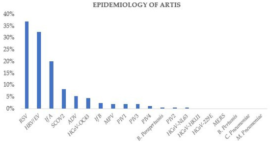 A study [21] conducted in Rome revealed that throughout the entire study period (2018–2022), the most prevalent pathogen causing ARTIs was SARS-CoV-2 (38%), with rhinovirus and RSV ranking second and third, respectively. Specifically, the year 2020–2021 lacked a significant RSV peak in children, while in 2021–2022, RSV reached its highest observed peak during the study period.