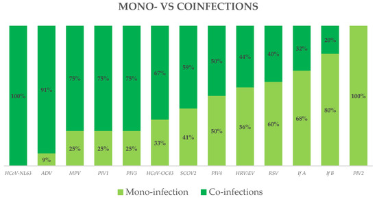 Distribution of viruses: mono-infection vs. coinfections.