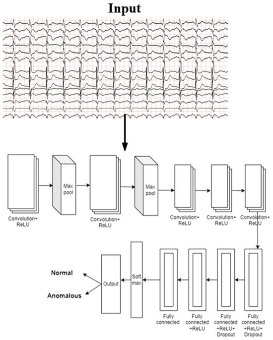 The heartbeats were categorized into two groups as normal and anomalous, as presented in Figure 8. If the heartbeat is determined to be normal, the input is not sent to the cloud network. It is essential to ensure that the beats that are anomalous are classified with more precision. It is well known that the heart rate changes from its regular pattern during arrhythmias. Premature beats are characterized by rapid cardiac changes that arise when the chambers of the heart or ventricle burst prematurely or out of sync with the regular pulse. The anomalous beats’ waveform differs from that of the typical beats.