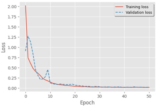 To see how well the model is learning, the training loss and validation loss are usually shown over the span of the training dataset’s iterations (Figure 6). A drop in the validation loss suggests that the model is successfully extending to new data, and a decrease in the training loss shows that the model has learnt well from the training data. To improve extrapolation, normalization or changing the structure of the model may be required if the training loss keeps going down while the validation loss starts to rise. This could be an indication of overfitting. But this is not the case with the proposed approach, and it is depicted in Figure 8.