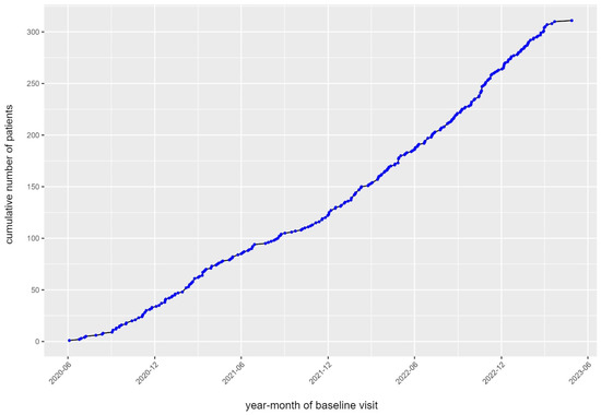 Up to March 2023, we included 311 patients in the registry. Inclusion into the registry, depicted in Figure 2, started in June 2020, at the beginning of the COVID-19 pandemic, and rapidly increased over the course of 2021–2022.