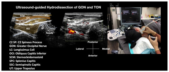 - True Access to Nerve Entrapment Sites: This approach is the first ultrasound-guided hydrodissection approach to truly target the GON as it passes through the SSC and UT muscles, which are other common sites of nerve entrapment [25]. Currently, no other proposed non-surgical treatments are effective [30].