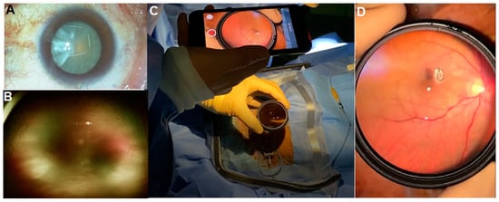 31]. This setup minimizes the guesswork involved in manually estimating distances, thereby facilitating the capture of high-quality, reproducible images. For instance, 3D-printed mounts can securely attach lenses like the Pan Retinal 2.2 BIO Lens (Volk Optical, Inc., Mentor, OH, USA) to smartphones, allowing for stable and consistent imaging. Additionally, devices such as the iExaminer (WelchAllyn, Skaneateles Falls, NY, USA) and D-Eye adapter (D-EYE Srl, Padova, Italy) offer integrated solutions that combine the smartphone with specialized ophthalmoscopes, further simplifying the imaging process and improving the field of view and image quality. These advancements make smartphone fundus imaging a viable, low-cost alternative to traditional fundus cameras, particularly beneficial in low-resource settings.