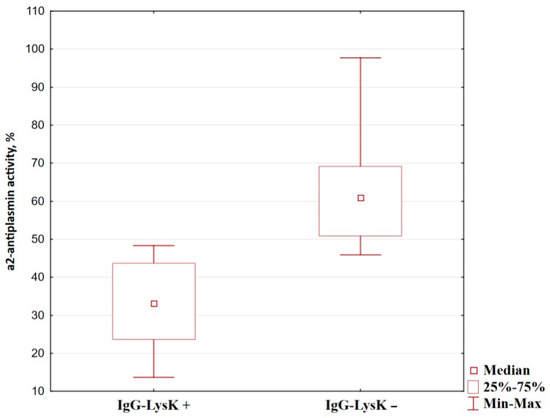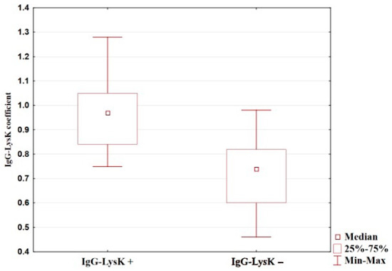 | IgG-LysK− | 11 | 7.6 (5.6: 8.8) | IgG-LysK−/IgG-LysK+ | =0.001 * |
