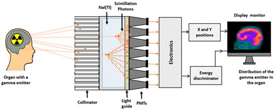 The Anger scintillation cameras’ basic technological concepts used in SPECT imaging have not changed over the past 50 years [1,2]. Figure 1 shows a diagram of an Anger scintillation camera with its basic hardware components. Until the early years of this century, this design had several limitations, compromising its counting performance and increasing the delivered radiation doses and imaging time. Photomultiplier technology led to a large and bulky camera head that require extended spaces. They were also inconvenient for scanning immobile and paediatric patients [2,3]. The physical characteristics of NaI(Tl) crystals and PMTs have limited the photon energy resolution. Furthermore, the spatial resolution is reduced by the limited number of PMTs and the geometric characteristics of the collimators. The sensitivity of the Anger scintillation camera is relatively low due to several factors, including photon collimation, scintillation crystal efficiency, photon absorption and scatter, and energy window settings. Hence, longer acquisition times or higher doses of radiopharmaceuticals are needed to obtain clinically useful images [2].