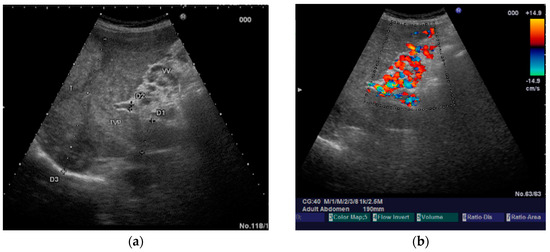- De Gaetano, A.M.; Lafortune, M.; Patriquin, H.; De Franco, A.; Aubin, B.; Paradis, K. Cavernous transformation of the portal vein: Patterns of intrahepatic and splanchnic collateral circulation detected with Doppler sonography. AJR Am. J. Roentgenol. 1995, 165, 1151–1155. [Google Scholar] [CrossRef] [PubMed]