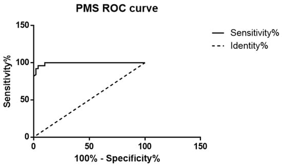 ROC analysis of PMS values of healthy and neoplastic pancreatic margins.