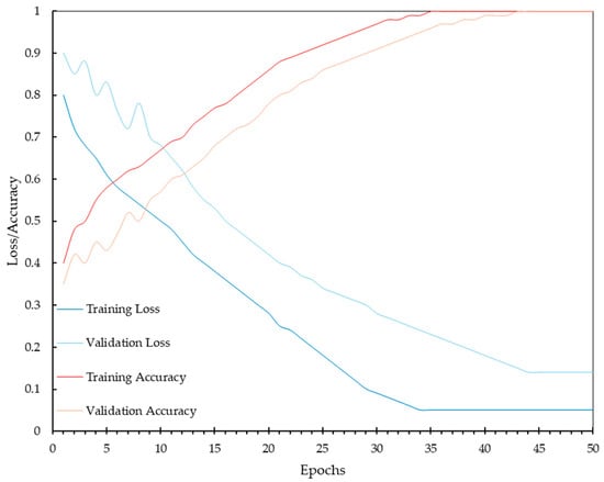 The Adam optimizer, along with the selected hyperparameters, were not further tuned beyond these results as they were acceptable based on the performance metrics achieved. The next step involves testing the model on a separate 10% of the data that was reserved for this purpose. This testing phase aims to validate the model’s generalization capability and assess its performance in a real-world scenario. Table 7 presents the confusion matrix.