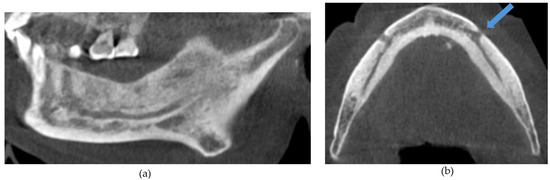 - Shimamoto, H.; Grogan, T.R.; Tsujimoto, T.; Kakimoto, N.; Murakami, S.; Elashoff, D.; Aghaloo, T.L.; Tetradis, S. Does CBCT alter the diagnostic thinking efficacy, management and prognosis of patients with suspected Stage 0 medication-related osteonecrosis of the jaws? Dentomaxillofac. Radiol. 2018, 47, 20170290. [Google Scholar] [CrossRef] [PubMed]