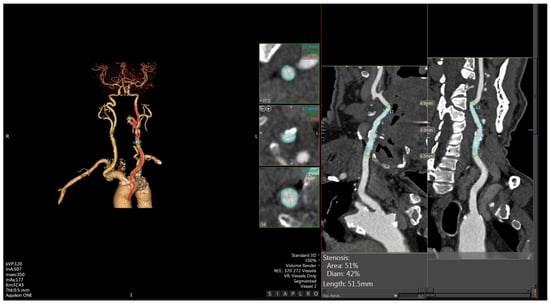 The reference diagnostic methods for the evaluation of carotid stenosis are currently ultrasonography, magnetic resonance imaging (MRI), and computed tomography angiography (CTA) [4].