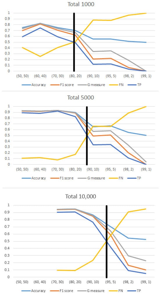 The aforementioned trend is also evident in the specific case described at the end of the introduction. The study’s outcomes reveal that, when the dataset is balanced, the ML system performs more favorably compared to the larger dataset that is unbalanced. This observation corroborates the broader finding regarding the impact of dataset size on performance and aligns with the notion that achieving class balance within the dataset yields better results, even if the dataset size is relatively smaller.