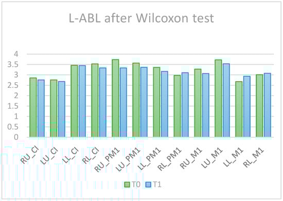 L-ABL before (T0) and after (T1) orthodontic treatment.