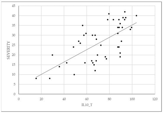 Correlation of tissue expression of IL-10 with severity of endometriosis.