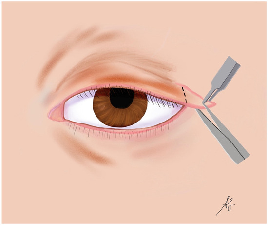 - Valenzuela, A.A.; Sullivan, T.J. Medial Upper Eyelid Shortening to Correct Medial Eyelid Laxity in Floppy Eyelid Syndrome: A New Surgical Approach. Ophthalmic Plast. Reconstr. Surg. 2005, 21, 259–263. [Google Scholar] [CrossRef]
