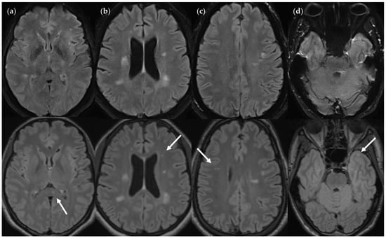 - Thompson, A.J.; Banwell, B.L.; Barkhof, F.; Carroll, W.M.; Coetzee, T.; Comi, G.; Correale, J.; Fazekas, F.; Filippi, M.; Freedman, M.S.; et al. Diagnosis of multiple sclerosis: 2017 revisions of the McDonald criteria. Lancet Neurol. 2018, 17, 162–173. [Google Scholar] [CrossRef] [PubMed]
