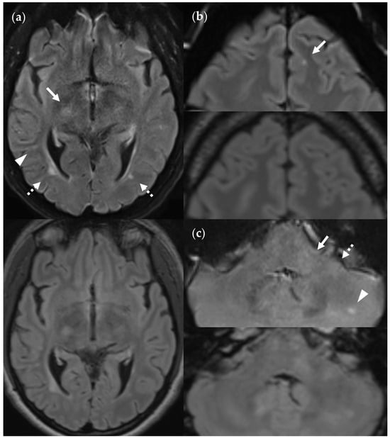 - Hagiwara, A.; Otsuka, Y.; Hori, M.; Tachibana, Y.; Yokoyama, K.; Fujita, S.; Andica, C.; Kamagata, K.; Irie, R.; Koshino, S.; et al. Improving the Quality of Synthetic FLAIR Images with Deep Learning Using a Conditional Generative Adversarial Network for Pixel-by-Pixel Image Translation. AJNR Am. J. Neuroradiol. 2019, 40, 224–230. [Google Scholar] [CrossRef] [PubMed]