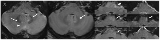 - Kinoshita, T.; Okudera, T.; Tamura, H.; Ogawa, T.; Hatazawa, J. Assessment of Lacunar Hemorrhage Associated With Hypertensive Stroke by Echo-Planar Gradient-Echo T2*-Weighted MRI. Stroke 2000, 31, 1646–1650. [Google Scholar] [CrossRef] [PubMed]