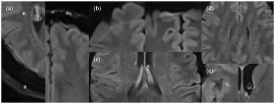 - Tawfik, A.I.; Kamr, W.H. Diagnostic value of 3D-FLAIR magnetic resonance sequence in detection of white matter brain lesions in multiple sclerosis. Egypt. J. Radiol. Nucl. Med. 2020, 51, 127. [Google Scholar] [CrossRef]