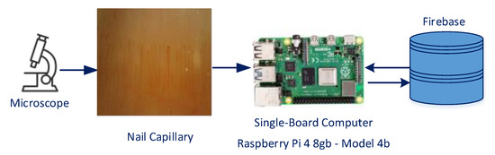 The proposed system not only improves the diagnostic process of diseases such as scleroderma by providing objective measurements but also facilitates the early diagnosis and monitoring of diseases. The integration of YOLOv8s into SBC for the acquisition and analysis of vascular images in the nail bed represents a cost-effective and efficient approach to capillaroscopy. As a result, the system shows promise for wider application in clinical settings, potentially contributing to improving patient outcomes through more accurate and timely diagnosis. The focus of our future research is on further improving the system’s capabilities and considering other conditions affecting capillary morphology.