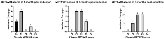 Graphical representation of liver fibrosis METAVIR outcomes at 1, 2, and 3 months post induction.