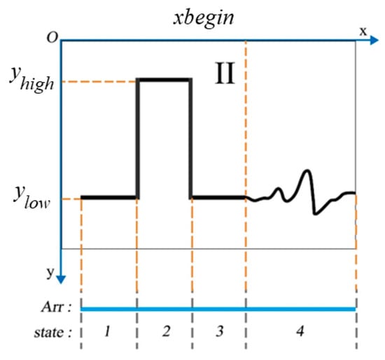 where and denote, respectively, the ordinate values corresponding to the high and low voltage levels of the square wave. Additionally, the abscissa value at the initial point of the signal is designated as , and the amplitude of the signal at the low voltage points of the square wave is recorded as 0 mV.