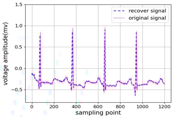 Figure 10 shows a sample comparison of waveforms which intuitively show the actual difference between the recover signal represented by the purple dashed line and the original signal represented by the pink line. The difference between the two is hardly noticeable and the consistency is high.