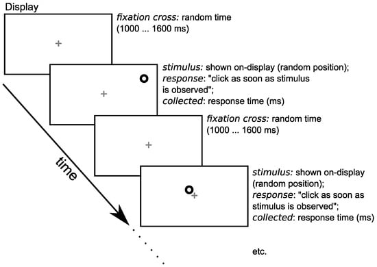 - Mathôt, S.; Schreij, D.; Theeuwes, J. OpenSesame: An open-source, graphical experiment builder for the social sciences. Behav. Res. Methods 2011, 44, 314–324. [Google Scholar] [CrossRef]