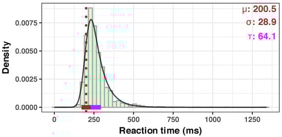 - Massidda, D. Retimes: Reaction Time Analysis; 2013. R Package Version 0.1-2. Available online: https://CRAN.R-project.org/package=retimes (accessed on 30 November 2023).