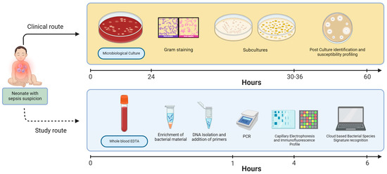 No restrictions for gestational age were set. In the case of suspected LOS, the study-related blood sample will be taken from the same source from which blood was collected for the conventional culture under aseptic conditions (i.e., venipuncture, intravenous cannulization, central venous catheter). In the case of suspected EOS, the study-related blood sample may be taken from the same source as conventional culture, or alternatively from the umbilical cord within 30 min after birth or from both, also under aseptic conditions. No additional phlebotomies or catheter placement procedures will be undertaken for the purposes of this study. The aim is to collect 1 mL of study-related blood for each participant, but if for any reason this is not feasible or does not comply with blood volume regulations for pediatric research [53], as may be the case for low birth weight (preterm) infants, smaller volumes may be collected and volume registration included as a variable. Parental or caregiver consent will be acquired from both parents and caregivers to finalize study participation.