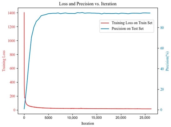 All experiments were trained on 8 GeForce V100 32G GPUs (NVIDIA Corporation, Santa Clara, CA, USA) for 26,250 iterations with a total batch size of 16. The total training time was 6 h, and the frame per second (FPS) was 0.658. The learning rate was initialized as 1 × 10−4, and it was decreased by 0.1 after 24,000 and 25,000 iterations, respectively. The number of queries used in our study was 100. The optimizer AdamW was used to optimize the model parameters. No direction-related data augmentation strategy was used during the training and test stages.