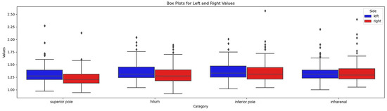 This showed that only the values measured on the right-hand side at the kidney upper pole and hilar level follow a normal distribution according to this test.