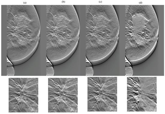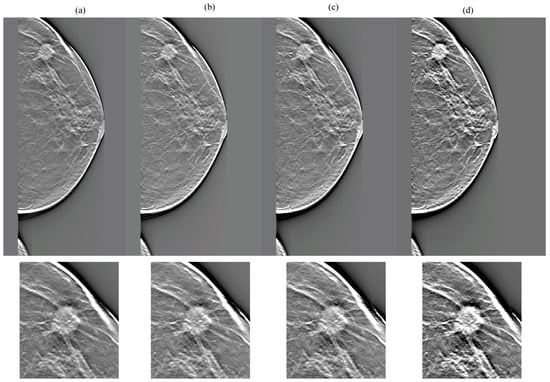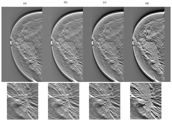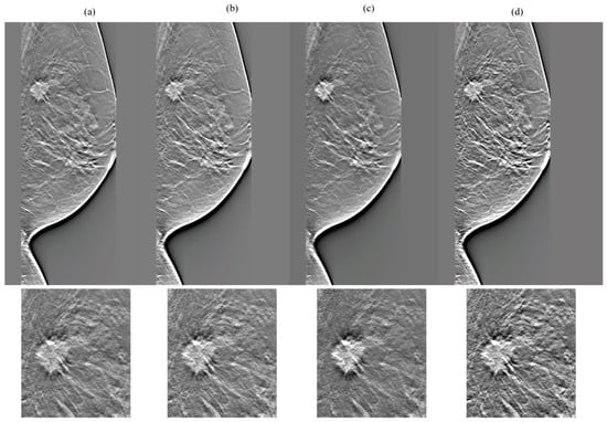 The conventional approach for image processing and building is associated with challenges that limit the identification of masses and the accurate preservation of their normal structure [10,11,12,13,14,15,16,17]. As the level of noise in low-dose imaging increases, the detection of masses and the preservation of normal structures (e.g., structural distortion, image sharpness, and artifacts) occur simultaneously.
