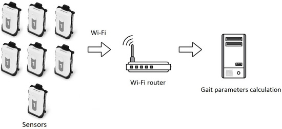 Each of the seven inertial sensors had a wireless connection with a computer via a Wi-Fi interface (