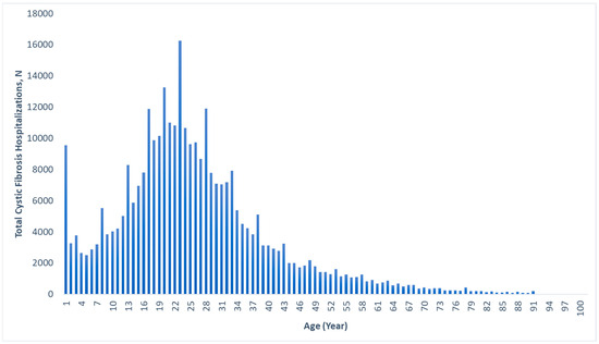 Age distribution of all cystic fibrosis-associated hospitalizations, 2010–2020.