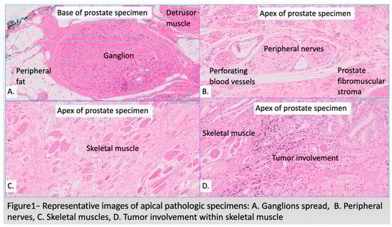 Several limitations need to be emphasized. First, the high prevalence of preoperative erectile dysfunction in our study impeded our ability to study the association between nerve sparing, postoperative ED, and UI. Second, due to the retrospective nature of this study, the authors were unable to calculate the weight of used pads, obtain bladder diaries, or perform urodynamic assessments, which are valuable tools for more accurate assessments. Additionally, the modest cohort size might have limited our ability to provide definitive proof of an association between the neuromuscular specimen characteristics and urinary incontinence []. There is clear need for more extensive research to better comprehend these interconnections and improve surgical practices and patient outcomes [].