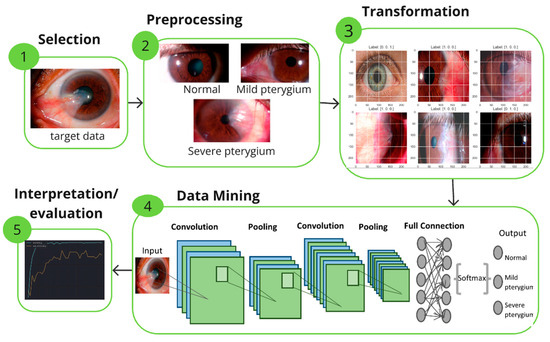 - Xu, W.; Jin, L.; Zhu, P.-Z.; He, K.; Yang, W.-H.; Wu, M.-N. Implementation and Application of an Intelligent Pterygium Diagnosis System Based on Deep Learning. Front. Psychol. 2021, 12, 4922. [Google Scholar] [CrossRef]
