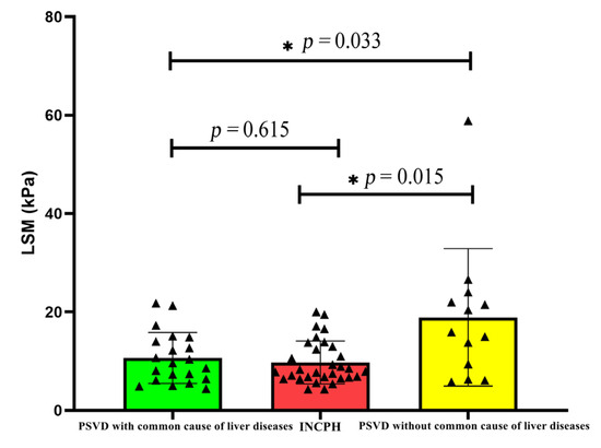 Comparison of LSM in PSVD with and without common liver diseases.