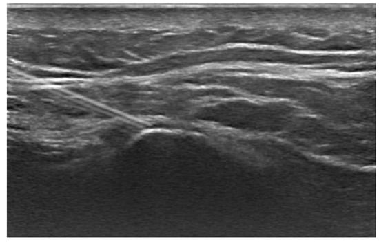 - Vita, F.; Origlio, F.; Pederiva, D.; Galletti, S.; Pilla, F.; Tedeschi, R.; Faldini, C.; Danilo, D. Efficacy of Ultrasound-Guided Hydrodissection for Treating De Quervain’s Tenosynovitis. JPRAS Open 2024, 41, 148–158. [Google Scholar] [CrossRef] [PubMed]