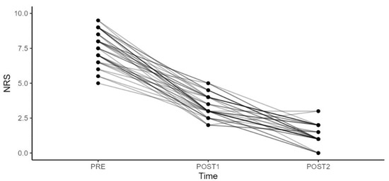Numeric Rating Scale (NRS) trends for pain levels following treatments.