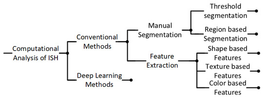 This review aims to provide a comprehensive overview of semi-automated and fully automated ISH-based computational methods, with a particular focus on breast cancer classification. We review the literature from 1997 to 2023, with an emphasis on image processing techniques and machine learning models, particularly deep learning, as they apply to HER2 gene amplification detection. Figure 2 provides a high-level breakdown of the computational methods commonly applied in the field. Through this review, we aim to clarify the relationships between different computational approaches, highlight key advancements, and discuss the potential for integrating these methods into routine pathology workflows.