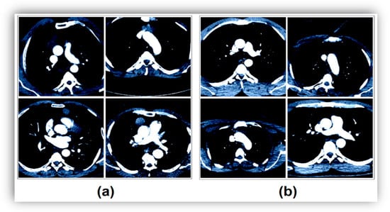The dataset consists of two classes. The number of images with thymoma disease is 384. The number of images without thymoma is 384. The images in the dataset are equally classified and consist of a total of 768 images. A sample subset of images belonging to the types of the dataset is shown in Figure 1.