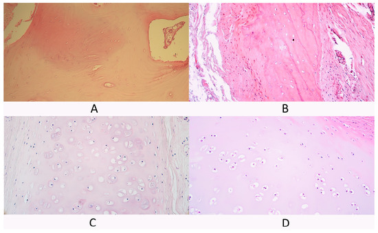 The cartilage tissue control group had hyaline cartilage plates with perichondrium (Figure 1C). Additionally, in two control patients, some mucoserous glands were also visible near the perichondrium.