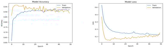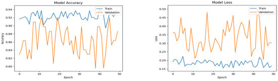 The test was conducted using various tuning parameters, and the results were taken for each setting. The optimal parameters obtained for the fine-tuning of the models were taken as the final setting and were as follows: epochs were set to 50, the learning rate was set to 0.01, the optimizer used was Adam, the loss function used was binary cross entropy, gradient descent was applied on batch of 32, etc. These are listed in Table 3.