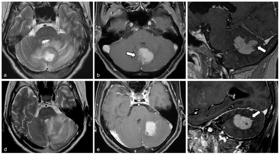 - Yoshida, S.; Takahashi, H. Cerebellar metastases in patients with cancer. Surg. Neurol. 2009, 71, 184–187. [Google Scholar] [CrossRef] [PubMed]