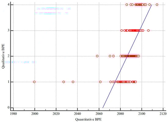 Scatter plot of the comparison of qualitative and quantitative BPE analysis.