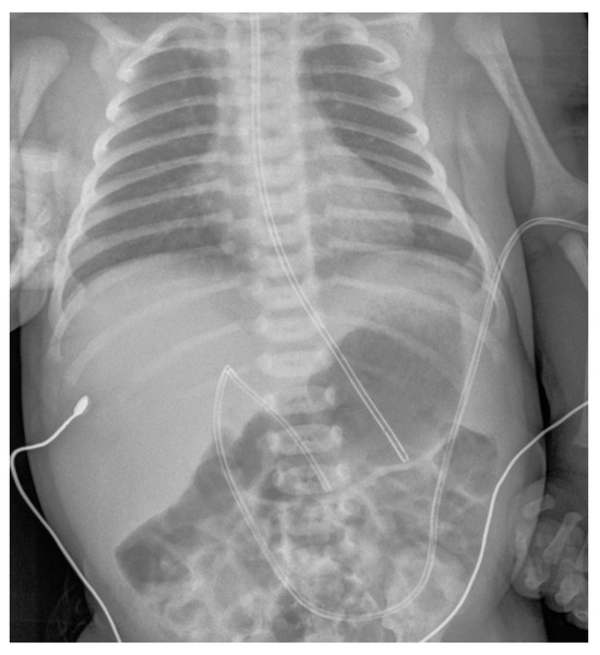 - Narla, L.D.; Hom, M.; Lofland, G.K.; Moskowitz, W.B. Evaluation of umbilical catheter and tube placement in premature infants. Radiographics 1991, 11, 849–863. [Google Scholar] [CrossRef]