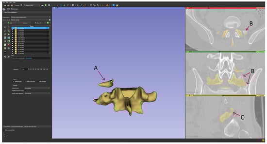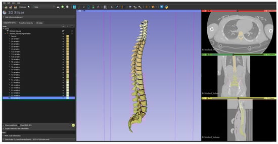 The 3D Slicer software (version: 5.4; slicer.org (accessed on 30 August 2023) [54] was used in this work. It is important to highlight that the program can be easily downloaded and used at no cost, being an open-source software.