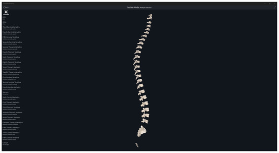 Reference digital models of vertebras used during the validation methodology from Complete Anatomy software (ver. 10.0.1) [44].