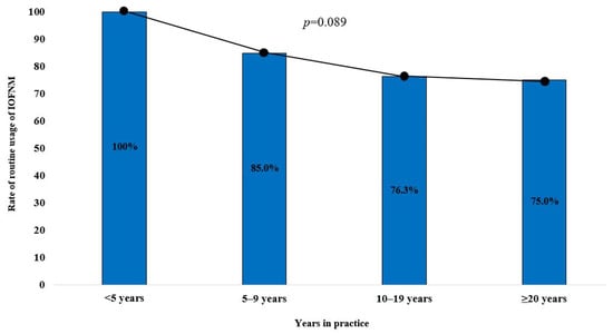 The distribution of routine usage of IOFMN by the surgeons’ level of experience in clinical practice.