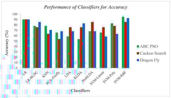 | Classifiers | ABC PSO | Cuckoo Search | Dragon Fly | |||